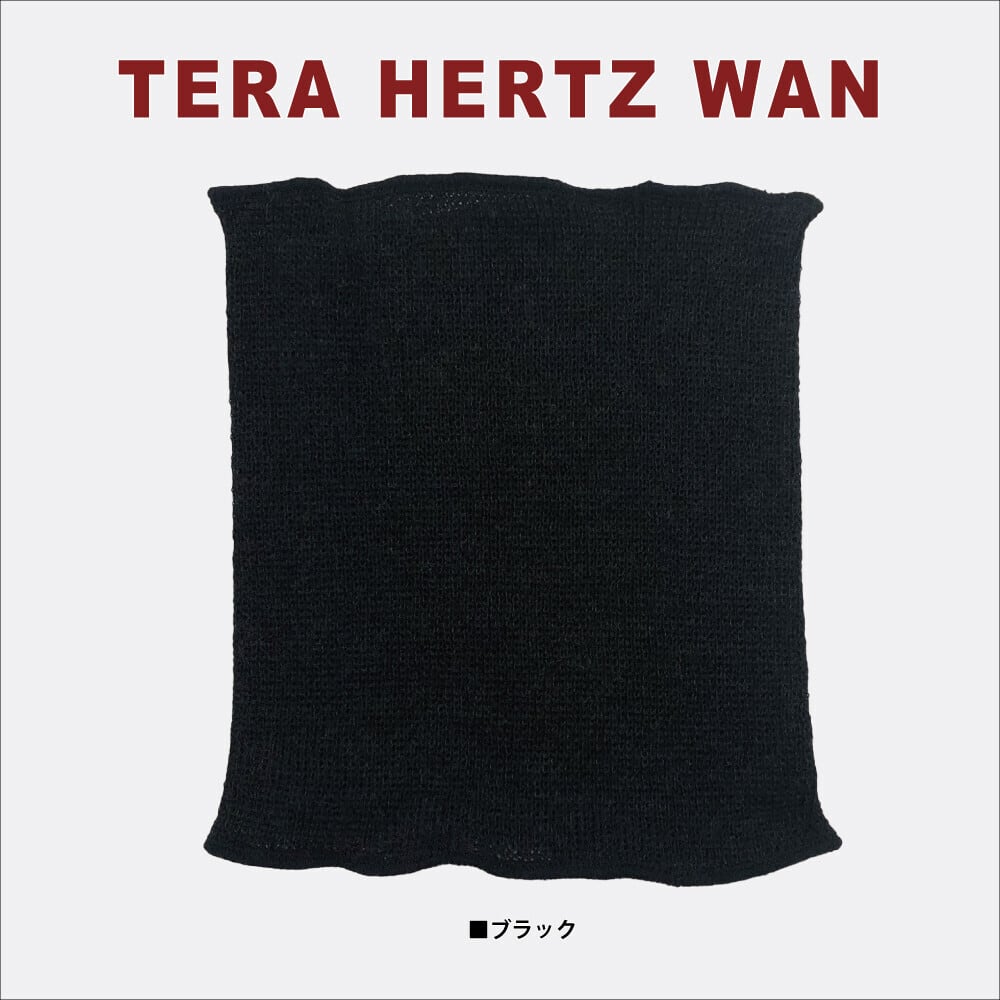 テラヘルツ鉱石を練り込んだ糸と絹糸を織り交ぜて編み立てた「テラヘルツワン・シルク腹巻」。